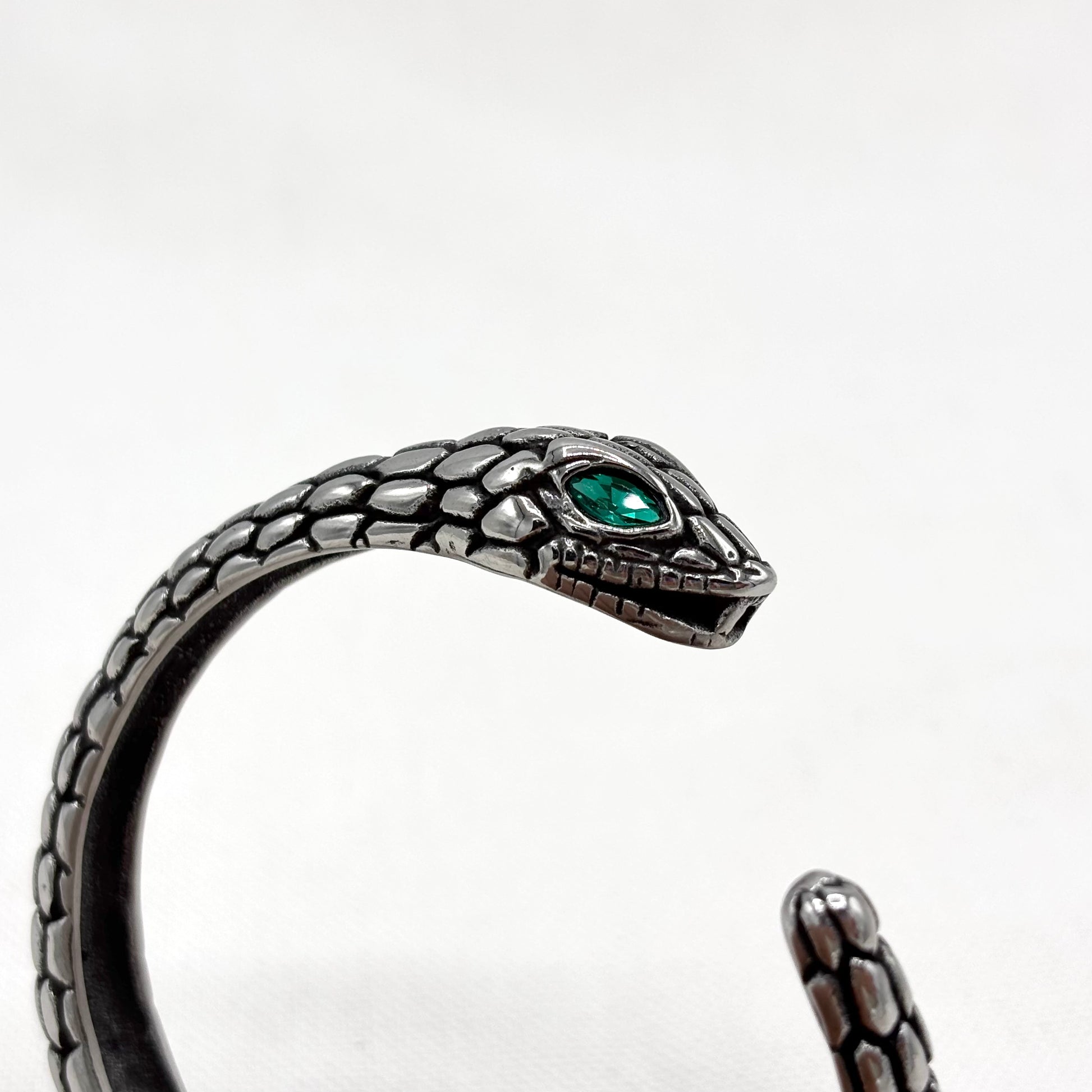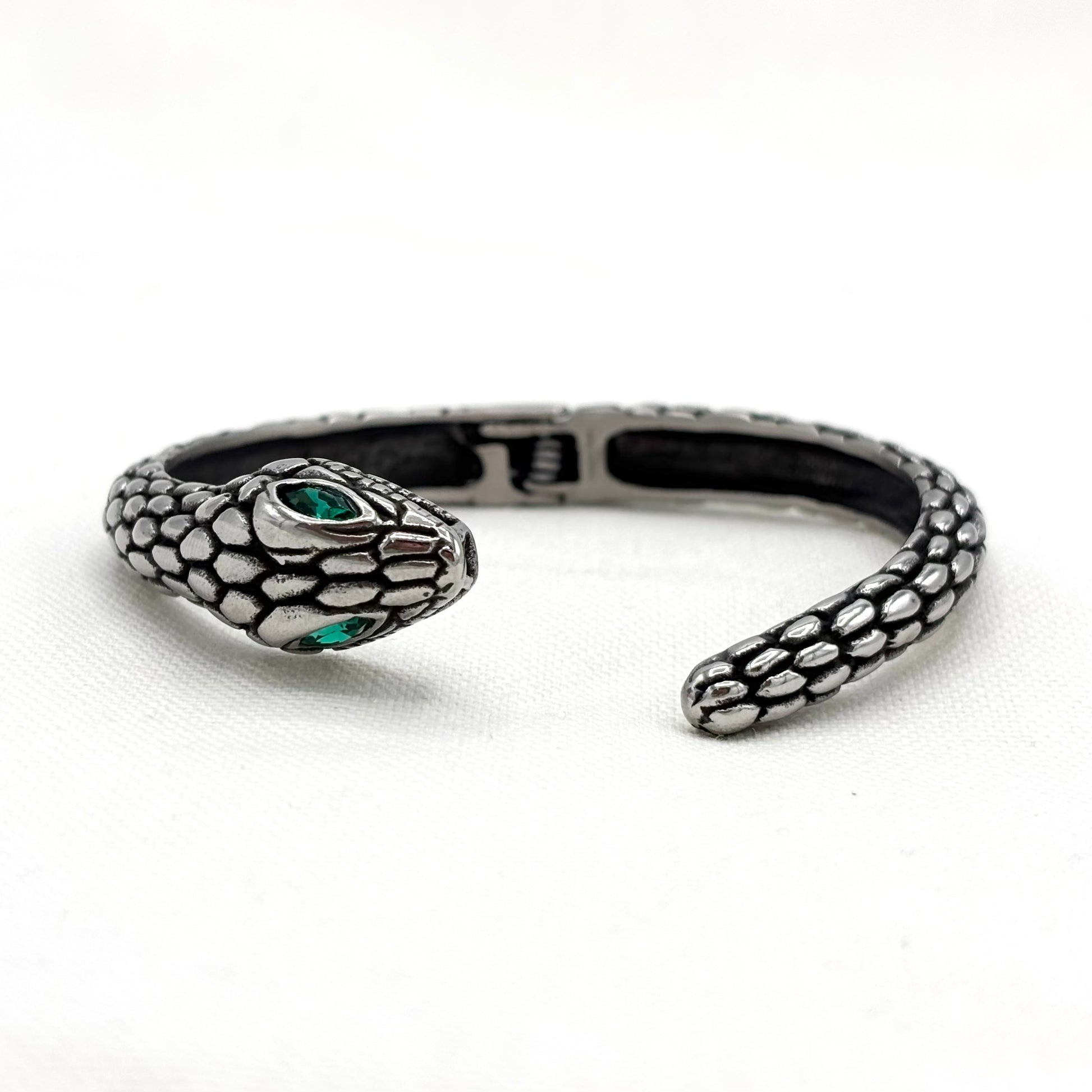 Bracelet Serpent Yeux Verts Acier Inoxydable Blanc